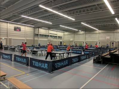 Mooie locatie voor een tafeltennisvereniging. Eigen bar met eenvoudige snacks, tribune, grote zaal. Jammer dat er geen zicht is op de buitenlucht. Leuk: wedstrijden worden rechtstreeks gestreamt op facebook.
